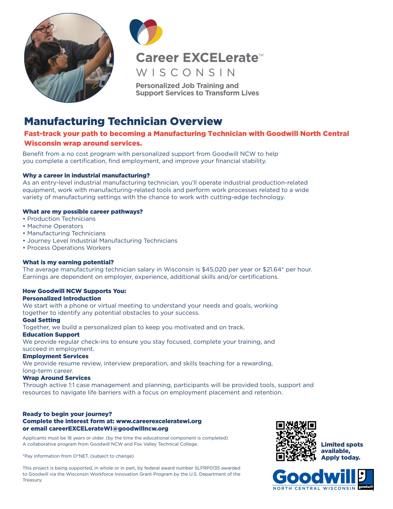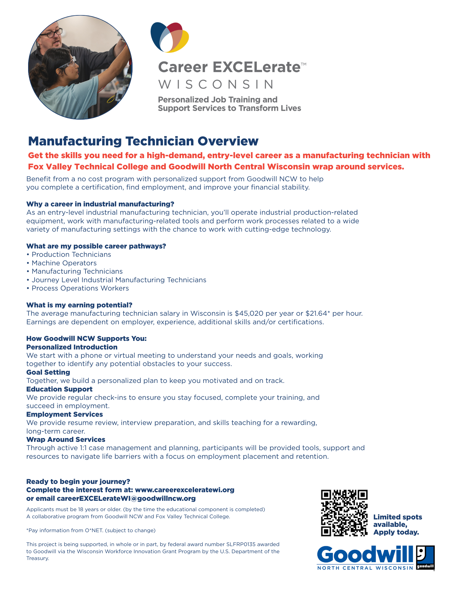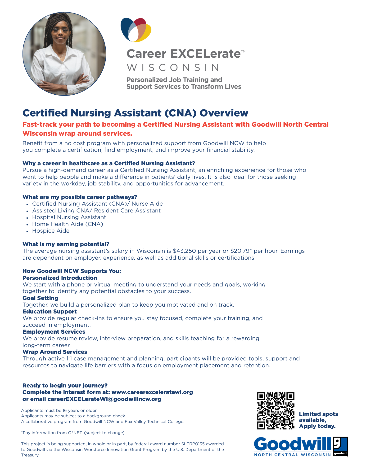 This project is being supported, in whole or in part, by federal award number SLFRP0135 awarded to Goodwill via the Wisconsin Workforce Innovation Grant Program by the U.S. Department of the Treasury.