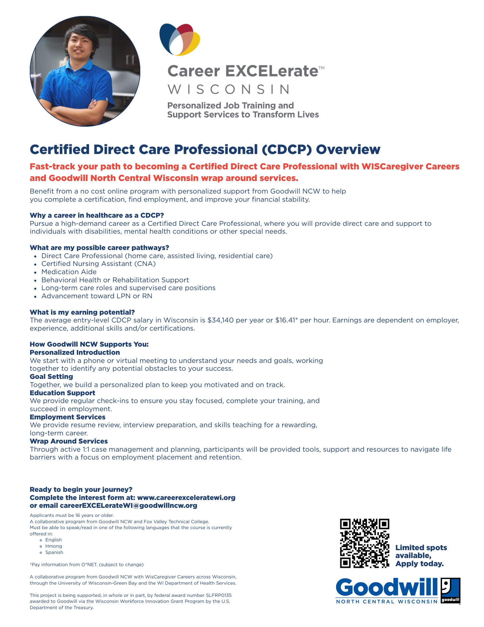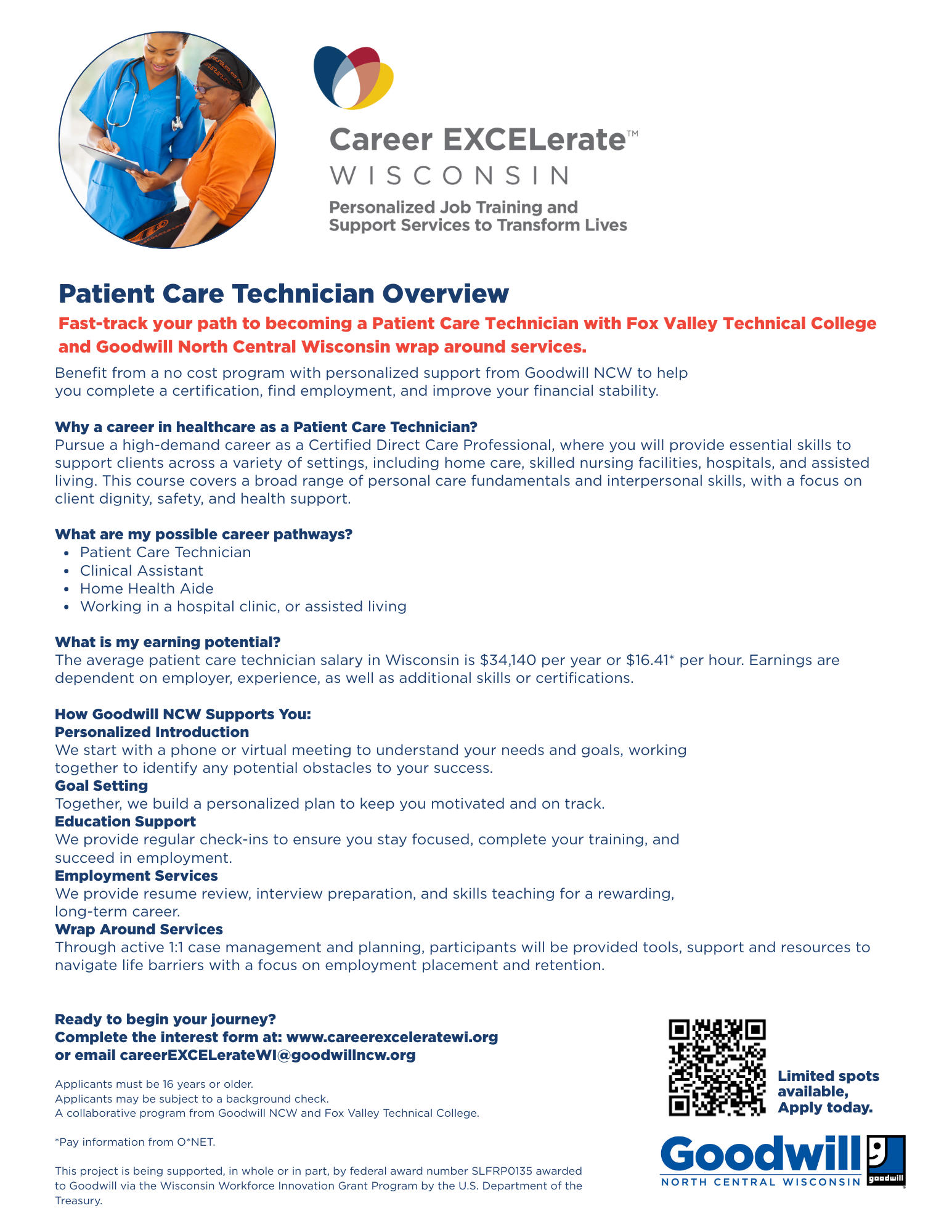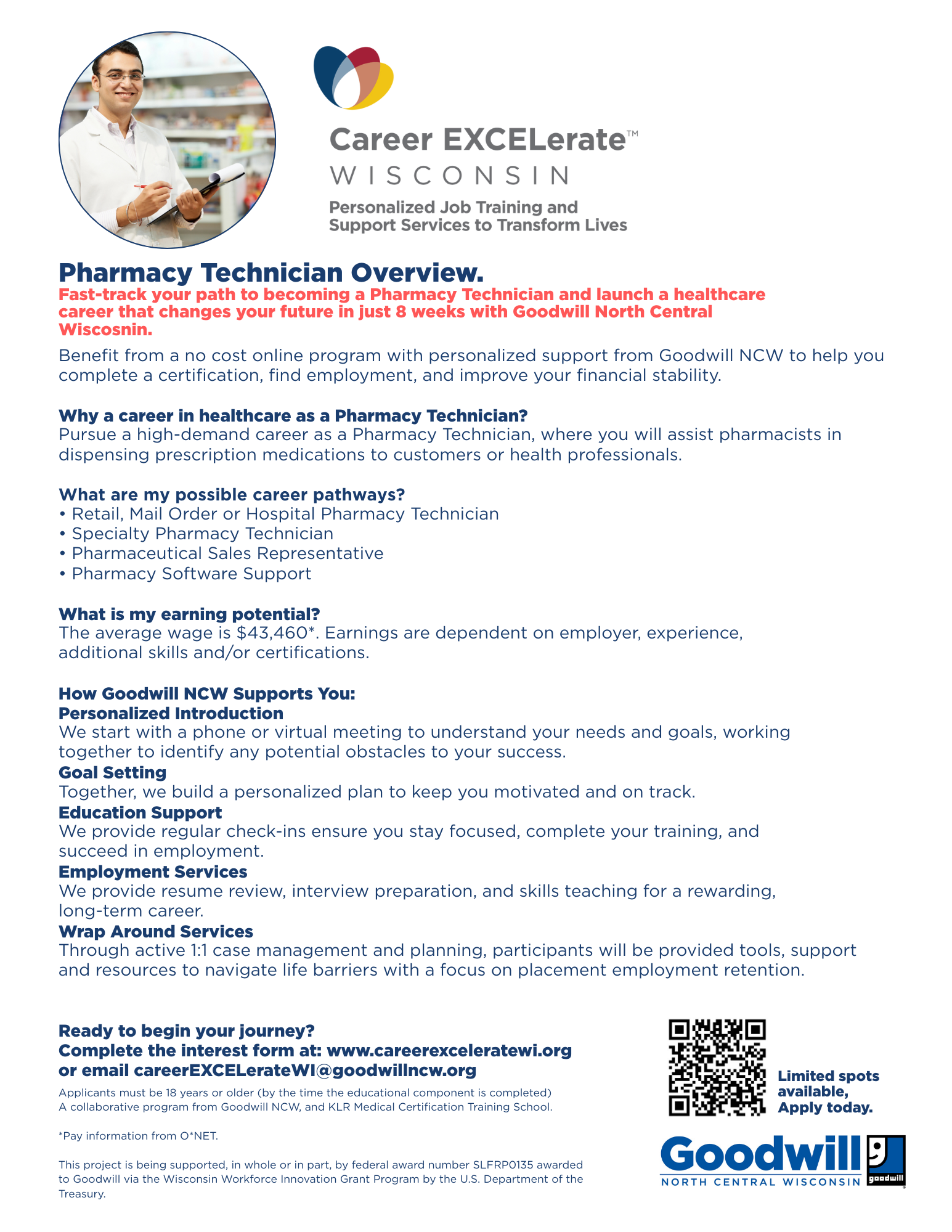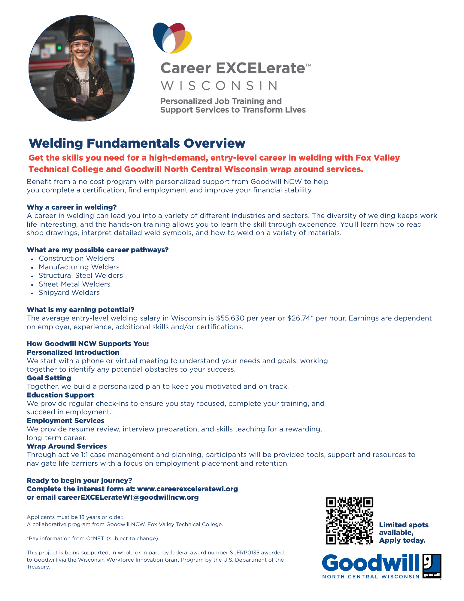 This project is being supported, in whole or in part, by federal award number SLFRP0135 awarded to Goodwill via the Wisconsin Workforce Innovation Grant Program by the U.S. Department of the Treasury.